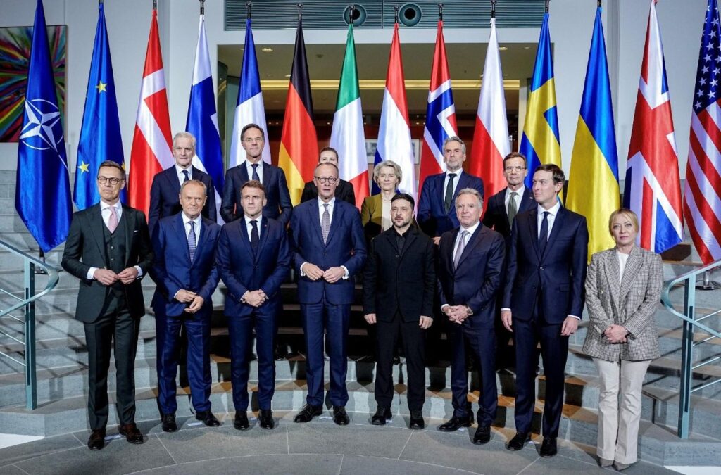 El borrador, discutido en la capital alemana, incluye «fuertes garantías de seguridad» similares al Artículo 5 de la OTAN, un ejército ucraniano de 800.000 soldados y la adhesión de Ucrania a la UE, según la Casa Blanca, que afirma que «el 90% de los asuntos se han resuelto». También surge la propuesta de una «fuerza multinacional» liderada por Europa y apoyada por Estados Unidos para defender Kiev. Esta fuerza «contribuirá a la regeneración de las fuerzas armadas ucranianas, la seguridad del espacio aéreo ucraniano y la protección de sus mares, incluso mediante operaciones dentro de Ucrania», según una declaración conjunta firmada por Alemania, Francia, Reino Unido, Italia, Polonia, Finlandia, Noruega, Suecia, Países Bajos y los responsables de las instituciones de la UE.